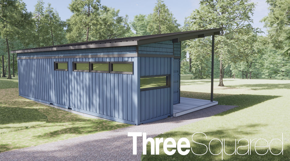 This getaway cabin on Torch Lake in northern Michigan utilities a 40 ft container and a 20 ft container. The two come together to form a spacious, bright living space with a full kitchen and bathroom.