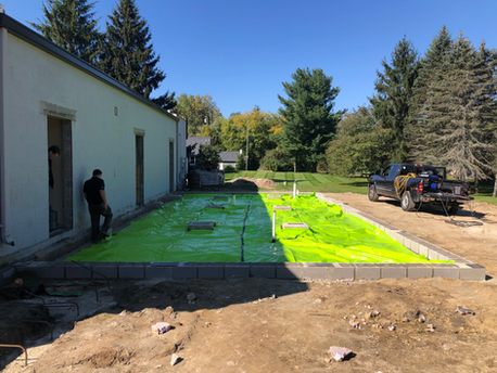 The project sits on a foundation that matches the existing building’s elevation and collects water from the original structure’s roof and disperses it across two downspouts into a retention area.